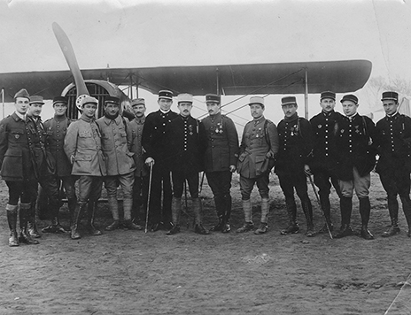 Les officiers pilotes des escadrille N 65 et N 103 posent à Cachy en décembre 1916 - De gauche à droite : Ltt Auguste Ledeuil (pilote N 103) - Ltt Henri Hervet (pilote N 103) - Cne Jean d'Harcourt (cdt N 103) - Cne François d'Astier de la Vigerie (pilote N 65) - Cne Benoit - Cne Gaston Luc-Puppat - Ltt Raymond Privat (pilote N 65) - Ltt Verdier-Fauvety (pilote N 65) - Cne Henri Langevin (pilote N 65) - Cne Dominique Ciechomski (pilote N 103) - X - Ltt Maurice Séjourné (pilote N 65) - Photo collection Ronan Furic que je remercie pour son aide.